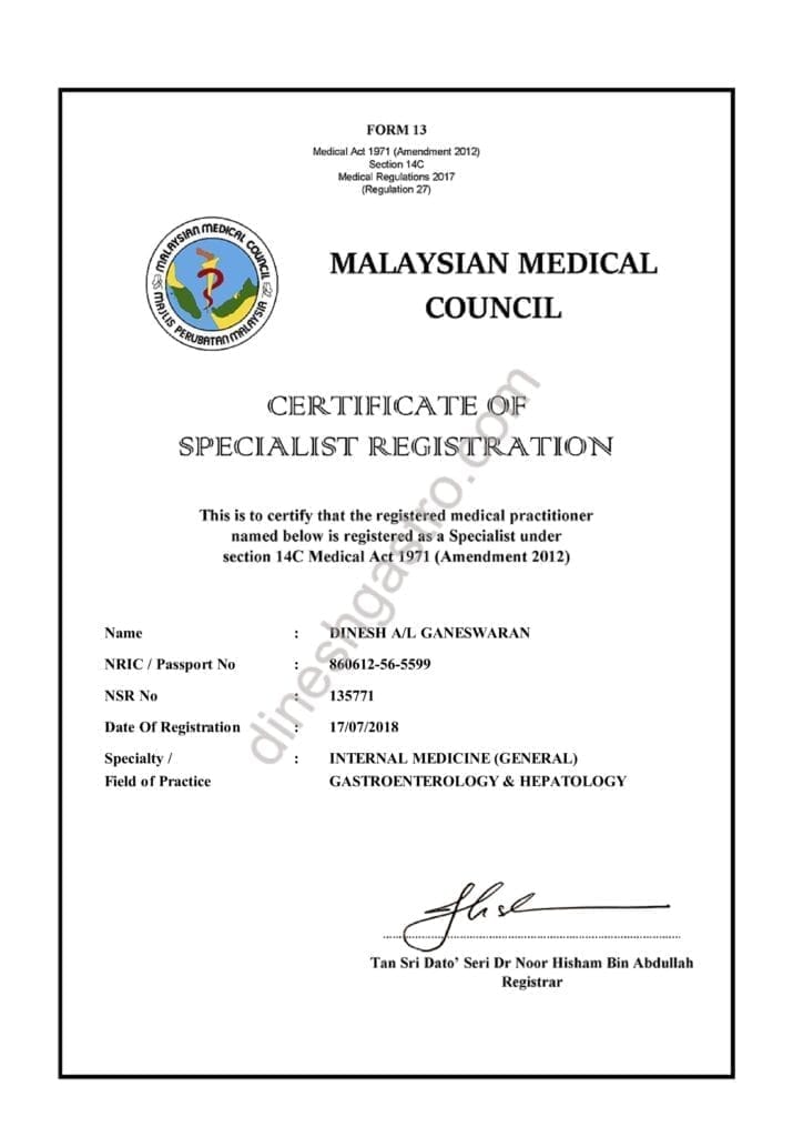 Specialist Registration – Please click here to view my current National Specialist Registration by the Malaysian Medical Council.